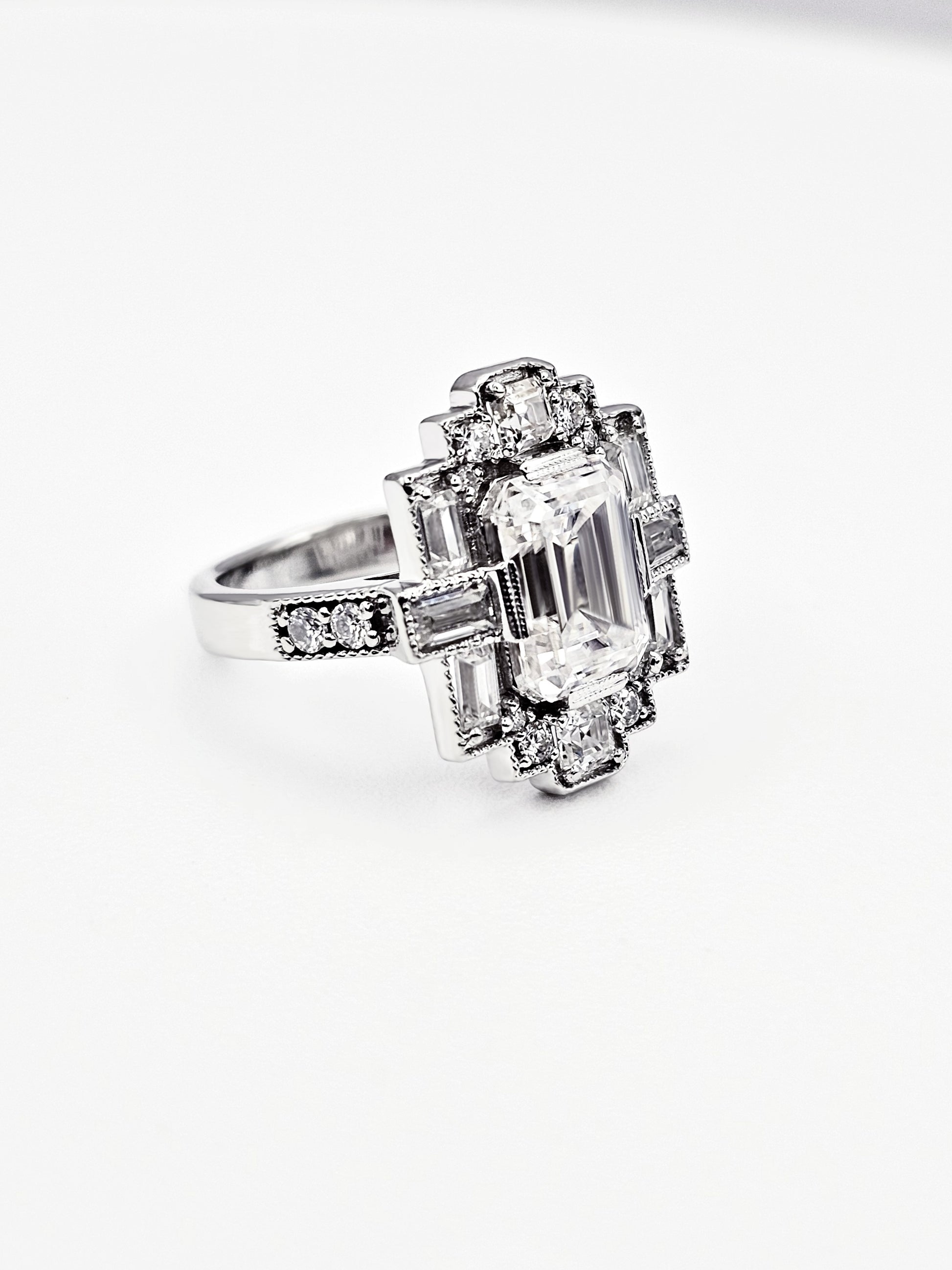 The Art Deco movement used a lot of bold, geometric forms to represent luxury and glamour. It has stood the test of time, continuing to feel modern and expensive... the perfect inspiration for an engagement ring, wouldn't you say?