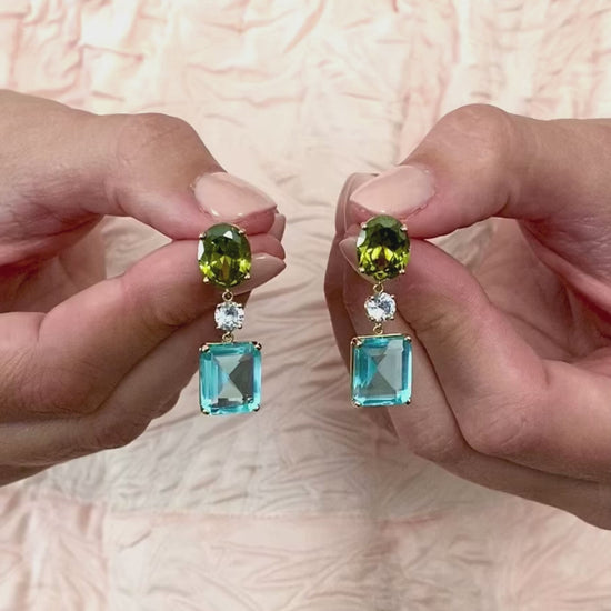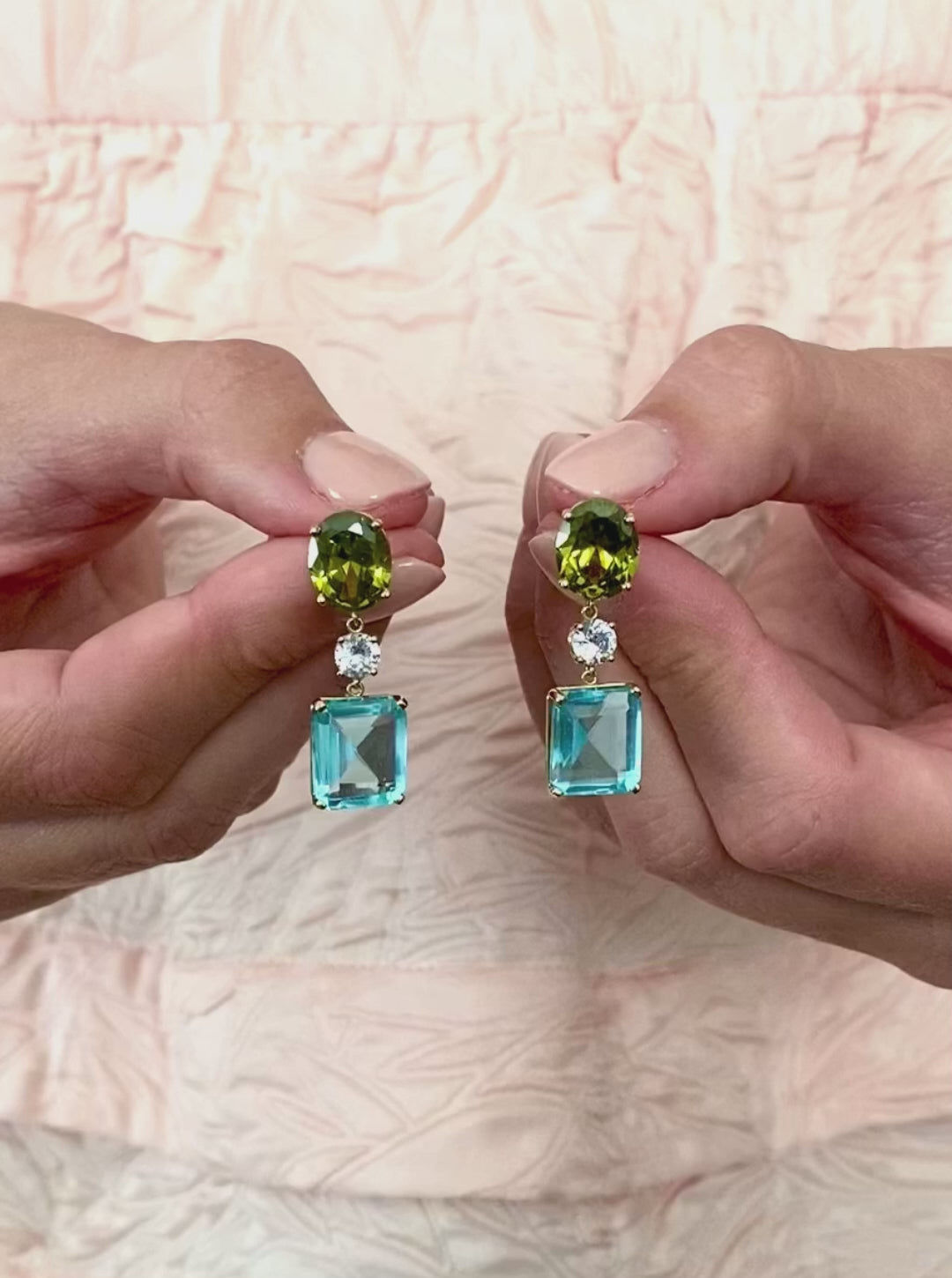 Our bride wanted statement earrings that could, not only, bring out the colors of her gown, but also be her "something blue".