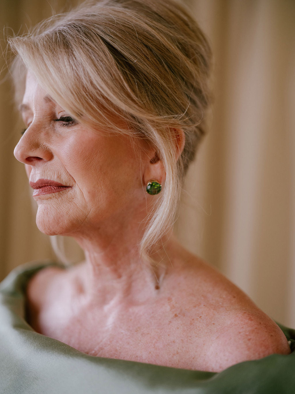 A Mother-of-the-Bride came to us with a special request. She wanted earrings that would complement her gown, without being too fussy. We loved how the beautiful shade of green, that she chose for her gown, matched her eyes. We immediately thought of Peridot!